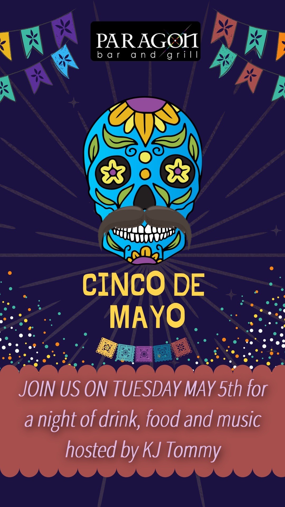 Come and celebrate Cinco De Mayo with us at Paragon. We will be having food and drink specials. Music/Karaoke provided by KJ Tommy. It's gonna be a blast!!