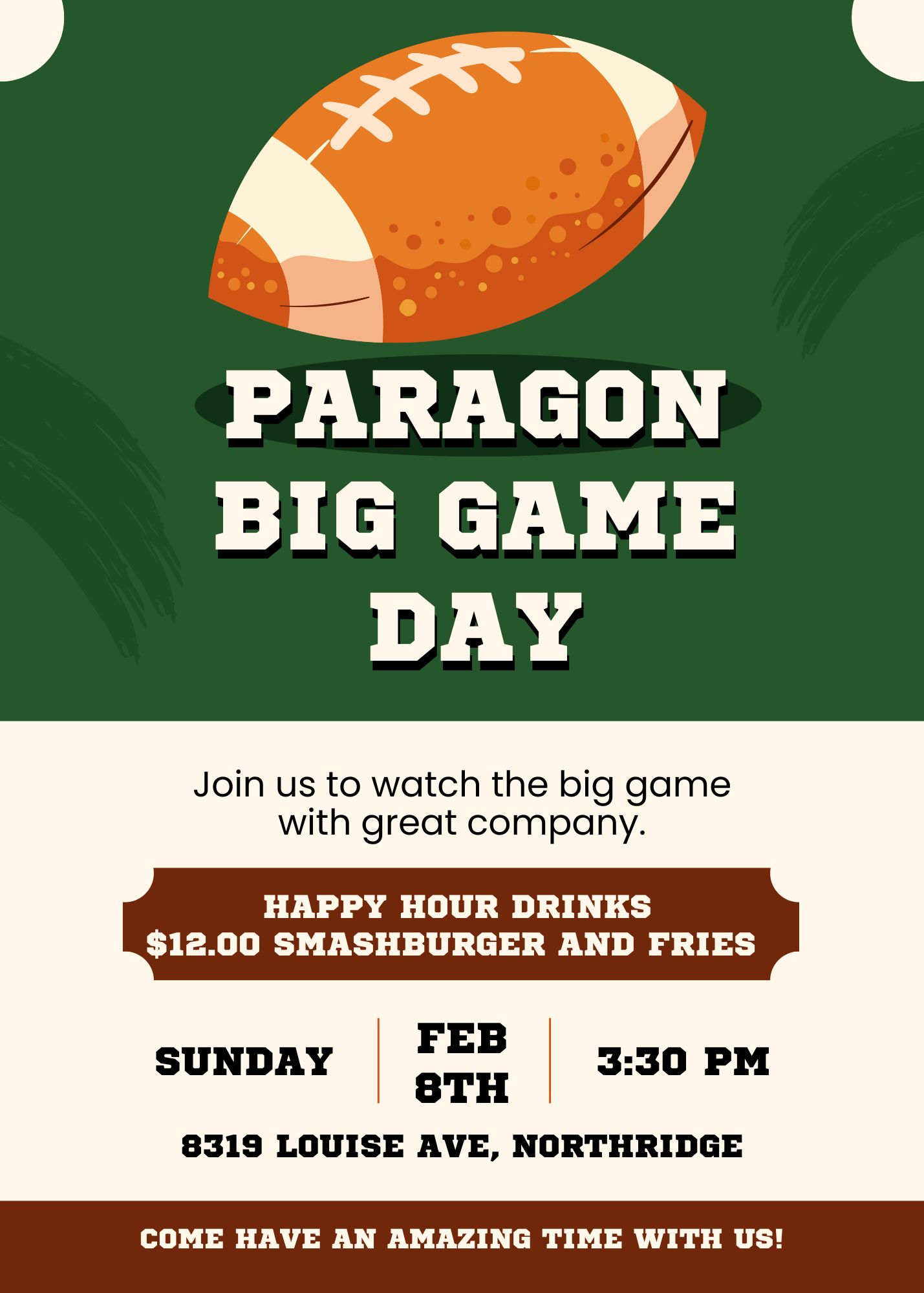 We can't wait for The Big Game on Sunday! Join us for awesome game day food and drinks!
